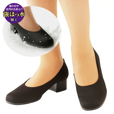 色々なフォーマルシーンにも ■強撥水の生地を使用した布製のパンプス ■足幅は4Eでゆったりめ。